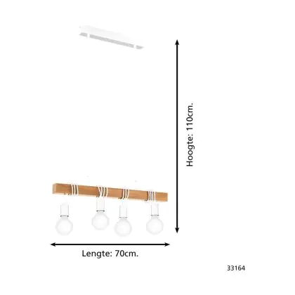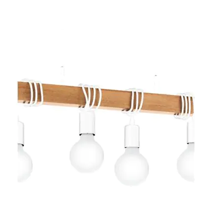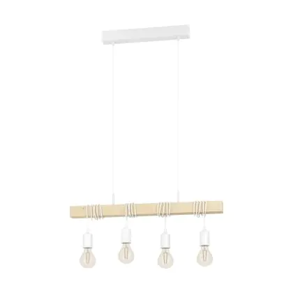Eglo Pendelleuchte Townshend Stahl Weiß Holz | IP20 - Geeignet für 4x E27
