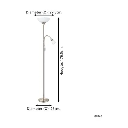 Eglo Stehlampe Up 2 Stahl Satin-Nickel | IP20 - Geeignet für 1x E27