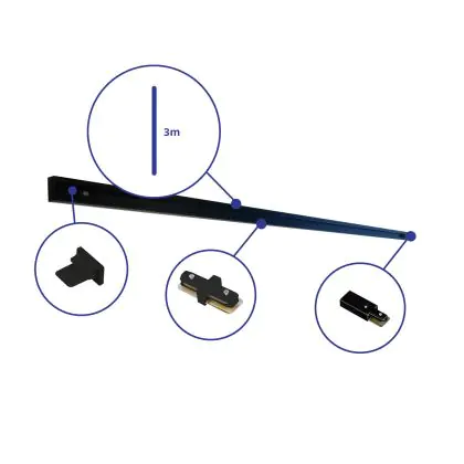 Bright Choice Rail Set Rail Monophasé 3 Mètre Noir | incl. Embout, Connecteur d’Alimentation et L-Connecteur