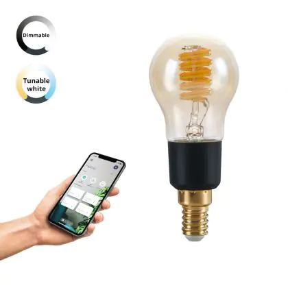 Cette ampoule Eglo Connect.Z Smart LED Boule E14 Filament Ambre 4.9W 320lm - 827-865 Accordable Blanc | Dimmable - Remplacement 25W avec son efficacité lumineuse de lumen par watt vous permettra de profiter d’un éclairage de qualité. Avec sa durée de vie de 15000 heures, vous n’aurez pas à vous soucier de son remplacement avant quelques années.