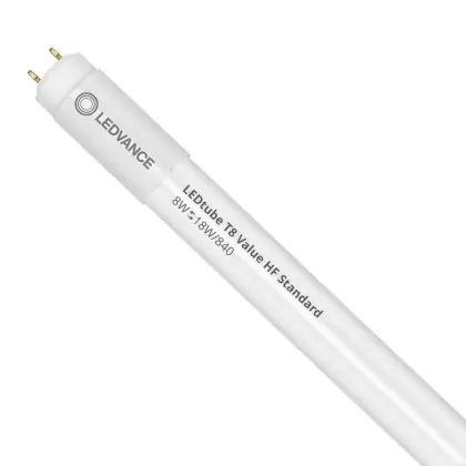 Ce tube LED Ledvance tube LED 60cm | 4000K 8W - Value est l’un des produits les plus éconergétiques en remplacement des tubes T8 classiques. Avec ce tube LED vous êtes donc assuré de sa qualité. Avec une puissance de seulement 8 W, ce tube LED a la même intensité lumineuse qu’un tube classique qui consomme 18 W.