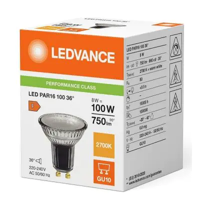 Lot 10x Ledvance LED PAR16 GU10 Réflecteur 8W 750lm 36D - 827 Blanc Très Chaud | Remplacement 80W