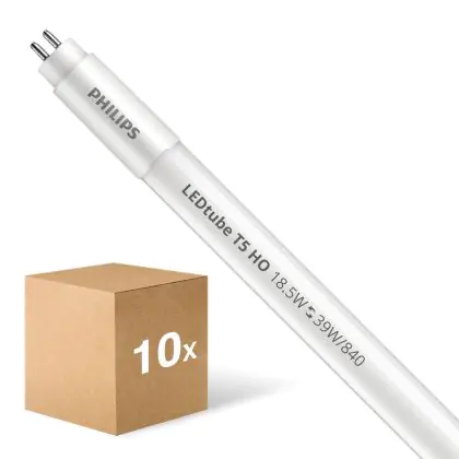 Ce tube LED Lot 10x Philips LED Tube T5 MASTER (Mains) High Output 18.5W 2800lm - 840 Blanc Froid | 85cm - Équivalent 39W est l’un des produits les plus éconergétiques en remplacement des tubes T5 classiques. Ce tube LED est produit par Philips, vous êtes donc assuré de sa qualité. Avec une puissance de seulement 18.5 W, ce tube LED Philips a la même intensité lumineuse qu’un tube classique qui consomme 39 W. P>