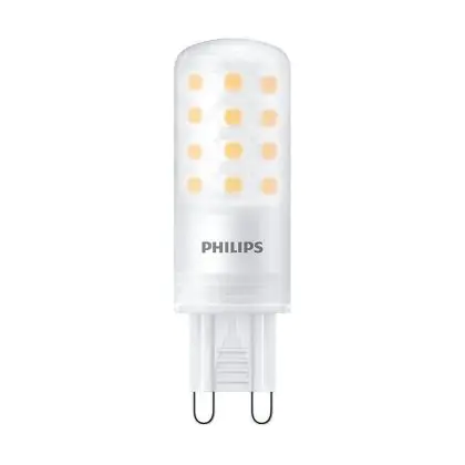 Les ampoules LED G9 sont des petites ampoules en forme de capsule. Ces ampoules vous permettront de remplacer vos ampoules à incandescence et à économies d’énergie sans modification de votre installation actuelle. Cette ampoule Lot 12x Philips CorePro LED Capsule G9 Dépolie 4W 480lm - 827 | Dimmable - Remplacement 40W est la variante à LED de l’ampoule G9 classique. Cette ampoule Philips se caractérise par sa faible consommation d’énergie. Elle n’utilise que 4 W, pour fournir une lumière de haute qualité. Cette ampoule LED est produite par Philips, une marque réputée en matière d'éclairage. Vous êtes donc assuré de sa qualité.