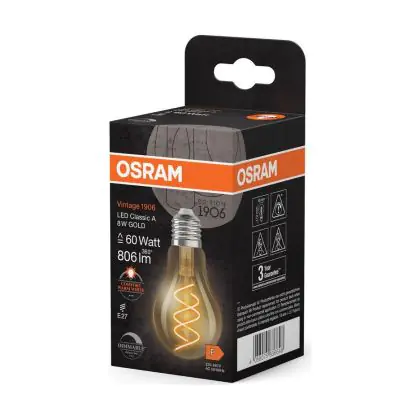 Cette ampoule Osram Vintage 1906 LED Classic E27 Poire Filament Dorée 8W 806lm - 922 | Meilleur Rendu De Couleur - Dimmable - Remplacement 60W avec son efficacité lumineuse de lumen par watt vous permettra de profiter d’un éclairage de qualité. Avec sa durée de vie de 15000 heures, vous n’aurez pas à vous soucier de son remplacement avant quelques années.