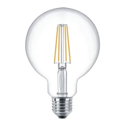 Cette ampoule Philips Corepro LED Globe E27 Filament Claire 95mm 7W 806lm - 827 Blanc Très Chaud | Équivalent 60W est l’alternative idéale pour la remplacement de votre ampoule classique de 60 W. La technologie LED intégrée vous offrira de nombreux avantages. Les ampoules à incandescence traditionnelles ont une durée de vie limitée. Cette alternative LED vous permettra de profiter d’un éclairage durable et fiable.