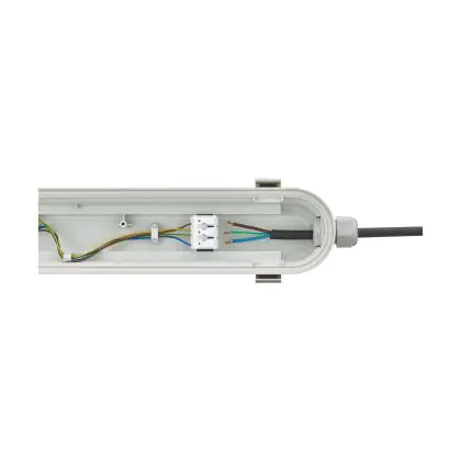 La réglette LED, Philips Réglette LED Étanche Coreline 75W 12000lm - 840 | 150cm - Remplacement 2x58W est conçue pour remplacer les réglettes TL-D traditionnelles et permettant d’économiser jusqu’à 50% d’énergie. Très souvent utilisé pour l’éclairage d’entrepôts, d’usines, de parking et d’autres grands espaces extérieurs. Très simple d’installation, cette réglette de 150cm peut se fixer au plafond et au mur et projette 4000K - Blanc Froid, comme couleur de lumière. La Philips Réglette LED Étanche Coreline 75W 12000lm - 840 | 150cm - Remplacement 2x58W dispose d’un indice de protection IP65 – Résistant à la poussière et à l'eau (jets d'eau) à l’eau et la poussière et d’une résistance aux chocs IK08.