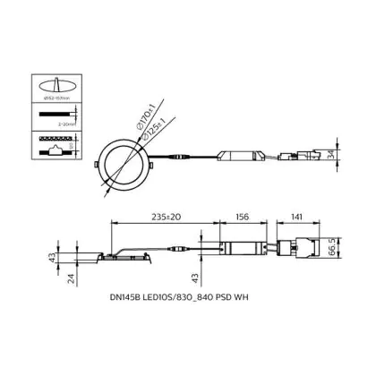 Description Philips Spot Encastrable LED CoreLine Aluminium Blanc 10W 1150lm 180D - 830-840 CCT | 170mm - Diamètre 155mm - IP44 - Dali Dimmable
